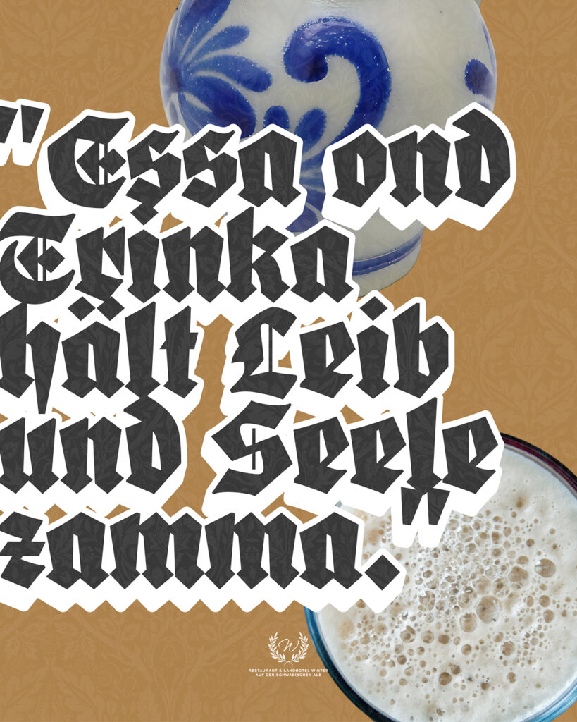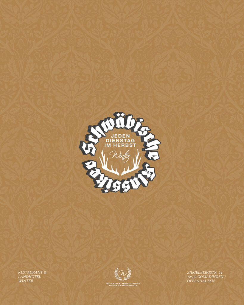 Ab Oktober wird es bei uns im Restaurant Winter richtig schwäbisch. Jeden Dienstag stellen wir unsere reguläre Karte zur Seite und kochen ausschließlich nach einer besonderen, klassischen Speisekarte. An diesem Tag dreht sich also alles um die Gerichte, die man in unserer Region seit Generationen kennt und liebt – von den typischen Käsespätzle über unsere hausgemachten Maultaschen bis hin zum schwäbischen Zwiebelrostbraten, Schweinebraten und herzhaften Krautgerichten.