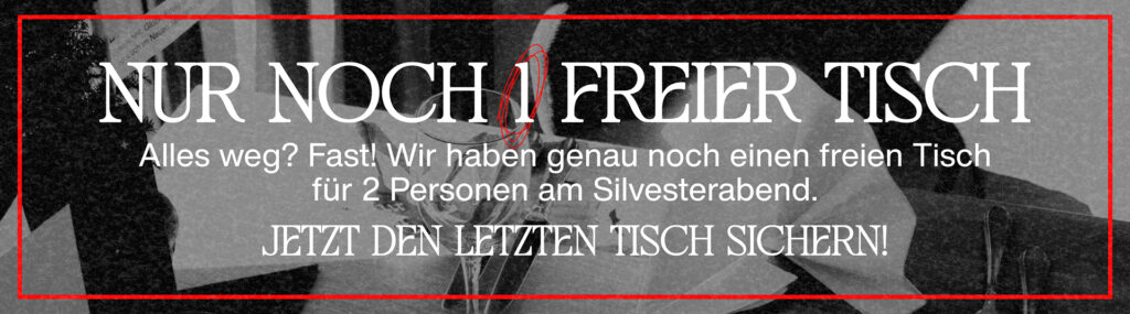 Wir verabschieden das Jahr mit einem festlichen 5-Gang-Silvestermenü. Los geht’s mit einem Begrüßungsaperitif und einem Gruß aus der Küche, bevor wir euch mit fünf Gängen durch den Abend begleiten. Um Mitternacht stoßen wir gemeinsam an – und dazu gibt’s noch einen kleinen Mitternachtssnack.