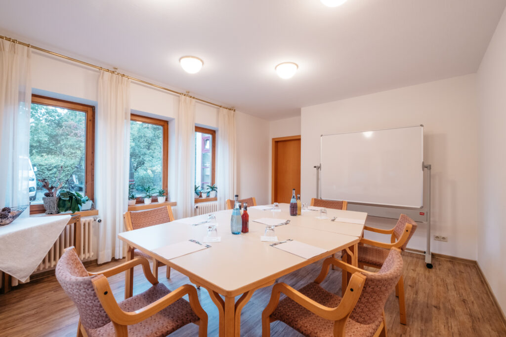 In unserem lichtdurchfluteten Tagungsraum in unserem Tagungshotel mit großzügiger Terrasse ins Grüne finden bis zu 40 Personen Raum für frische Ideen, konzentriertes Arbeiten und inspirierenden Austausch. Ob Seminar, Tagung oder kreativer Workshop – hier entsteht Raum für Neues. Für kleinere Runden oder ungestörte Gespräche steht ein zusätzlicher Besprechungsraum für bis zu 10 Personen zur Verfügung – ideal für Gruppenarbeiten, Bewerbungsgespräche oder intensive Meetings.